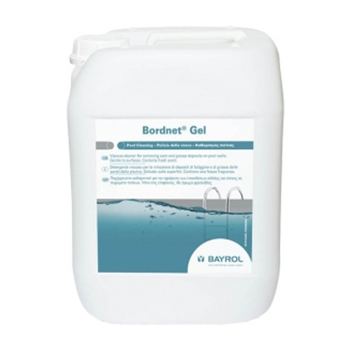 Bordnet Gel jest przeznaczony do czyszczenia linii wodnej i obrzeży basenów. Preparat posiada dużą zdolność rozpuszczania starych osadów brudu, tłuszczu i mydła ułatwiając czyszczenie zaniedbanych basenów. Ze względu na dużą lepkość żel jest idealnym środkiem do czyszczenia pionowych powierzchni.